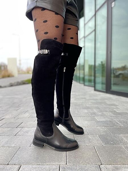 Женские ботфорты Vesna 2411/1 чёрные зима кожазамш натуральная