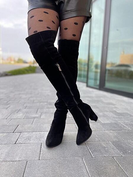 Материал верха: натуральная замша. Внутри: натуральный мех (по косточку) Высота сапога от пятки: 50см. Обхват голени :34-39см. Каблук: 10см.. Идут на стопу: 35р.-22.5см. 36р.-23см. 37р.-24см. 38р.-25см. 39р.-25.5см. 40р.-26см.Предложения от магазина