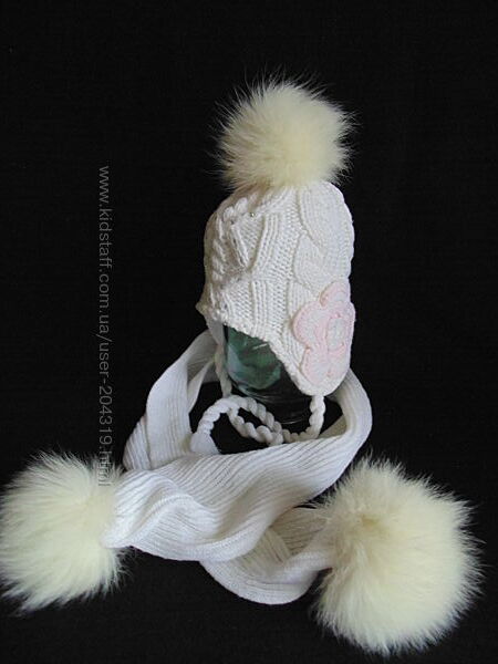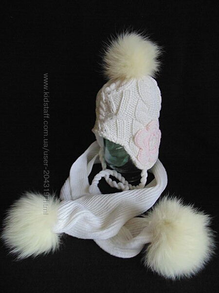 Подробное описание: Зимний комплект на флисе шапка шарфик с натуральными бубоном