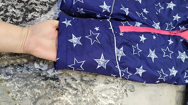 Фирменный термо комбинезон для девочки в звезды!Очень легкий,тонкий, но теплый. Утеплен внутри флисом по всей длине.