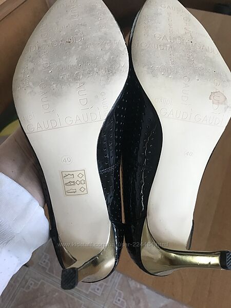Красивые чёрные туфли на золотом каблуке Gaudi