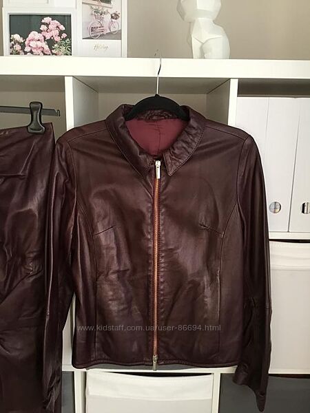 Винтажный костюм цвета бургунди из мягкой 100 кожи
