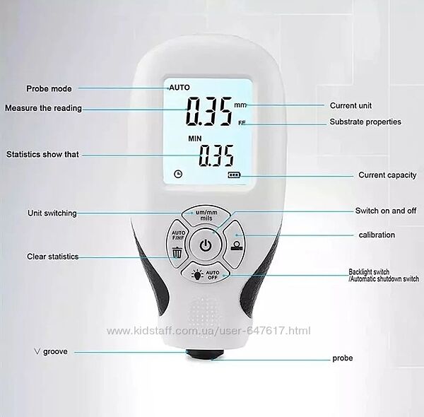 уровня, прибор с подсветкой. Каждый толщиномер индивидуально тестируется перед продажей.