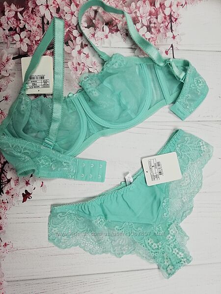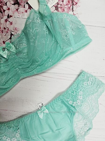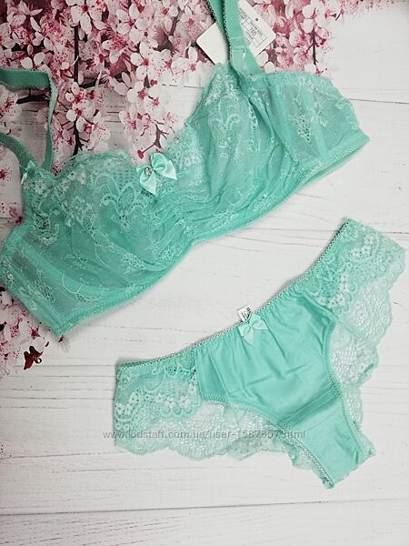 Бюстгальтер с мягкой чашкой и элегантным кружевом. Боковые косточки. Бретели не съемные. В комплекте трусики стринги( фото 5,6).Цвет:минерал