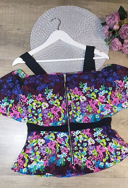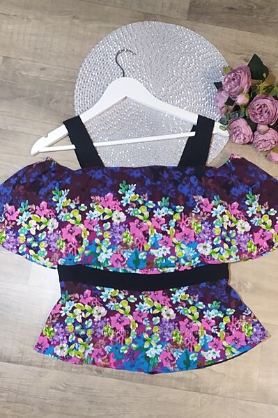 Подробное описание: Приталена блуза квітковий прін з відкритими плечима, воланами/баскою ByVery