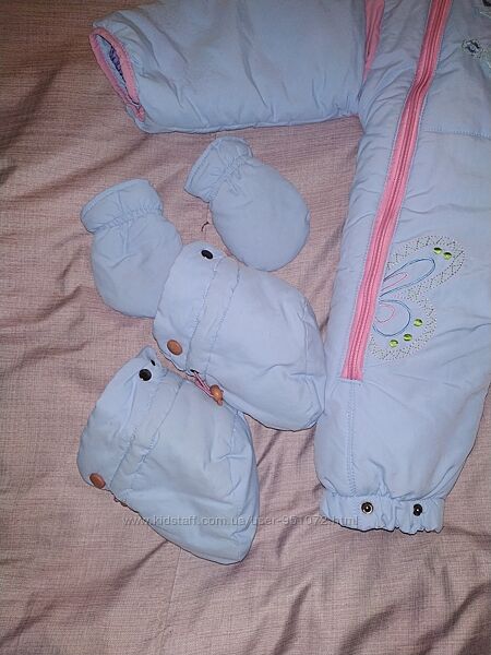Комбінезон на бискавках, розстібається зверху та на ножках, в комплекті рукавички та топики, фото 4.