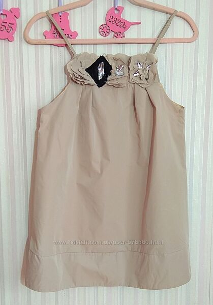 Бежева туніка-блуза з підкладкою, на тонких бретелях, що регулюються, декорована текстильною аплікацією і камінням. ТМ Ysatis. Розмір 42(XS).Склад: 100% поліестер