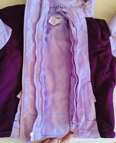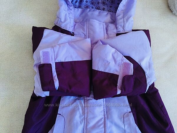 Circo. Демисезон. Лавандовый цвет. Не промокает. Не продувает. Удлиненная курточка, хорошо прикрывает попу, капюшон глубокий. Два ряда Молнии и липучки. Уплотнённые коленки. Манжеты на липучках. Размер указан 86, будет дольше.осень - весна. Синтепон.