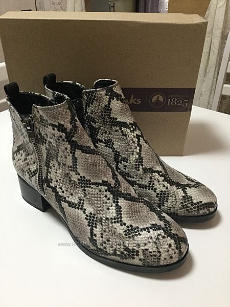 Clarks Mila Sky Grey Snake кожаные ботинки размер 37.5, 38, 38.5, 39, 39.5, ОригиналСнаружи качественная натуральная кожа цвета рептилия