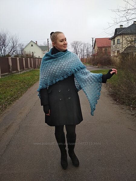 Подробное описание: Шаль. Ручная работа. Омбре, синего цвета Ажурная шаль. Зимняя шаль крючком