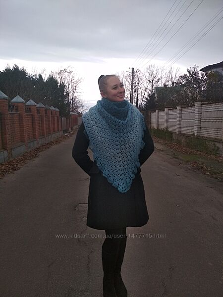 Шаль ручной работы крючком из пряжи ангора.Теплая,мягкая,хорошо носится ,лнгко стирается.Оригинальный аксессуар в Вашем гардеробе или отличный подарок к любому празднику для любимой женщины.