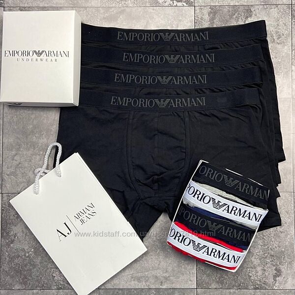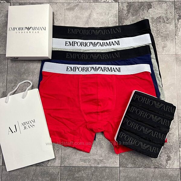 Набор 4 шт. Мужские трусы боксеры Armani LUX в коробке. Люкс качество.Мужской набор трусов Armani в фирменной коробке.