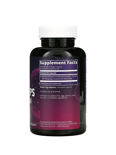 Подробное описание: MRM Nutrition кордицепс штамм CS-4 - 60 капсул / США
