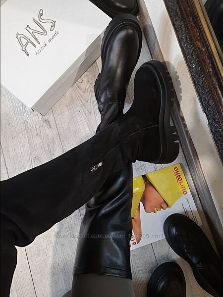 Ботфорты - чулки натуральная кожа/стрейч демисезонные