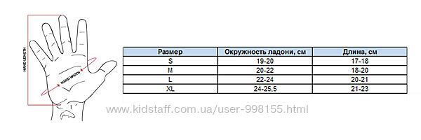 L : окружность ладони 22-23.5 см,длина 19.5-20.5 см