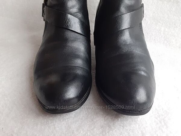Черные демисезонные полусапожки из натуральной кожи, от Gabor. Внутри флисовая подкладка. Б/у, состояние хорошее, есть потертости на носочках и каблуках, смотрите фото.Размер указан 3 1/2, длина стельки внутри 24 см, каблук 5,5 см.
