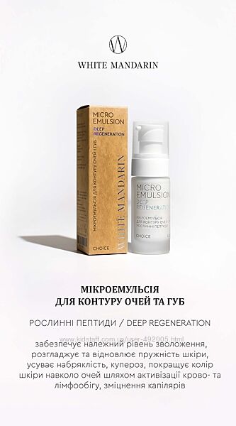 Подробное описание: Мікроемульсія для контуру очей і губ Рослинні пептиди Регенерація 30мл