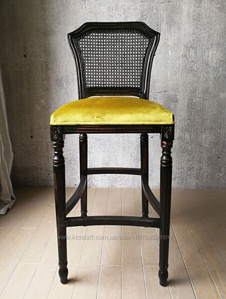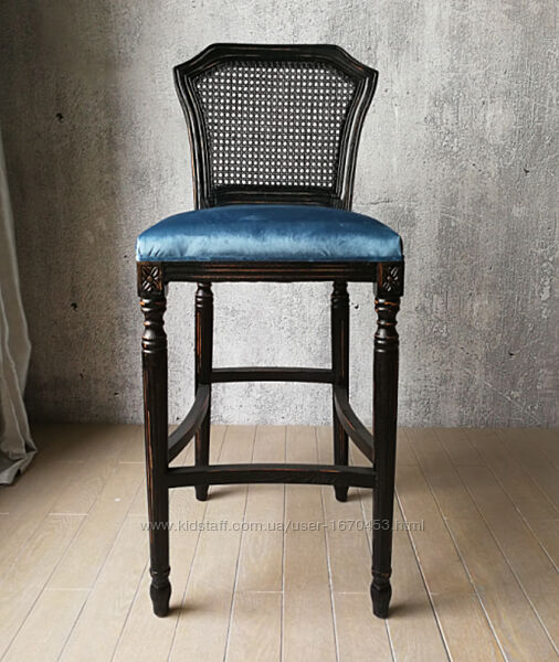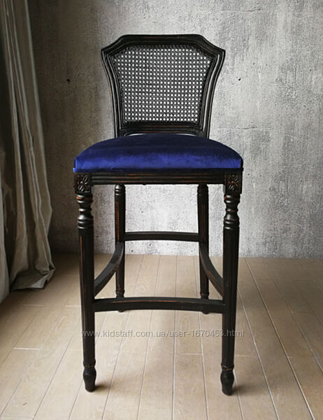 Стул барный выполнен из приятного бархата.Отличается удобной посадкой благодаря высокой спинке, расположенной под правильным углом, а так же мягким и широким сидением для больше комфорта.
