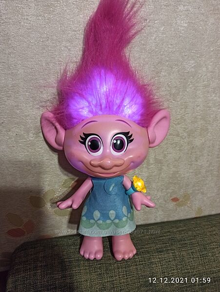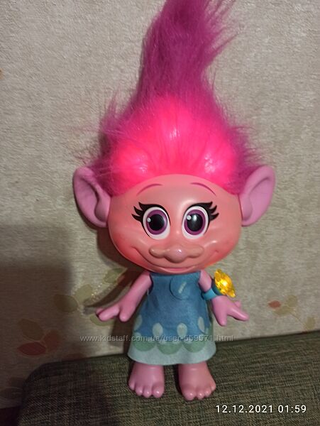 Розочка тролль интерактивная .Рост с волосами около 39 см.Оригинал Hasbro.Розочка светится,говорит фразы из мультика,если потянуть за ручки-поет песни из мультика.