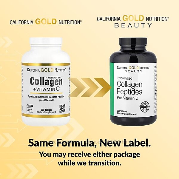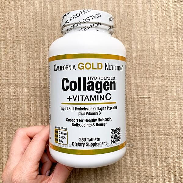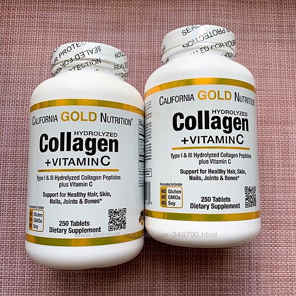 2) California Gold Nutrition Пептиды гидролизованного коллагена с витамином C, тип 1 и 3, 250 таблеток