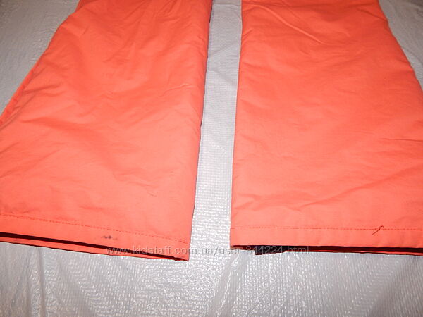 Внизу штанин - снегозащита с резиновым усилением, расстегивается, на липучке и кнопке