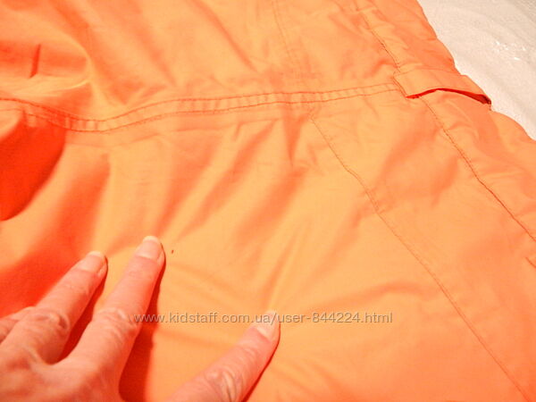 НЮАНСЫ - слегка заношены, попа немного потерта, справа на ней очень мелкая но длинная царапина на поверхности, под коленом очень бледное пятно, между ног темное от бугеля, потертости на обеих штанинах внизу там же микропорезы до 4 мм и неглубокие царапины, на левой штанине в самом низу темное пятно-полоса 3 см от бугеля, бледные темные пятнышки-полоски на поясе сзади, немного растянуты резинки в снегозащите. Нюансы в носке не заметны, постаралась отразить на фото, но почти не видно.