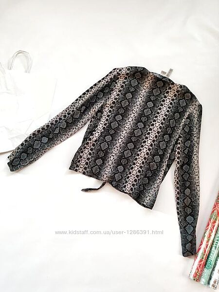 Трендовая блуза змеиный принт с пуговками и завязкой divided h&m Стильная трендовая блуза в змеиный принт на маленьких пуговках, с завязкой внизу. На теле смотрится красиво, к тому же очень удобная и мягкая. пог 40 длина 52 рукав 57 на автоматическую кнопку купить, не реагирую перед тем как совершить покупку ознакомится с рубрикой " Обо мне Доставка по всей Украине УП, НП с оплатой доставки при получении. Оплата на карту Приват банк. Возврат не предусмотрен.