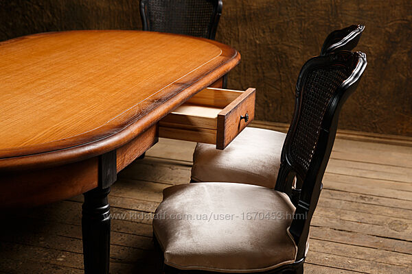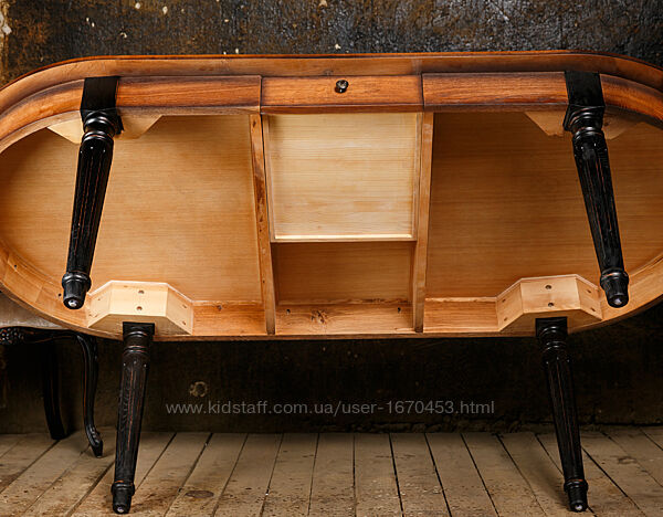 Обеденный стол элегантной овальной формой - уникальный запоминающийся предмет мебели, который, несомненно, будет доминировать в любом пространстве.Гармония светлого и темного цвета в изделии придают столу шарм и эксклюзивность благодаря чему Вы не захотите пропустить этот предмет ручной работы!