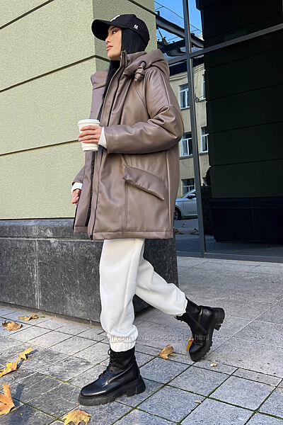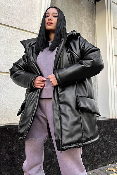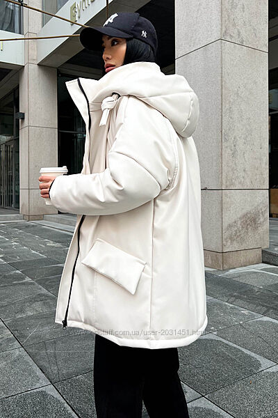 Трендовая теплая дутая куртка свободного кроя oversize со съёмным капюшоном.✔ Модель с удобным накладными карманами, застегивается на молнию-змейку спереди.