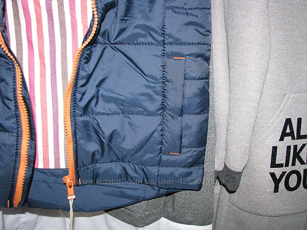 РАСПРОДАЖА ДЕТСКОЙ ОДЕЖДЫ!!!Предлагаю жилетки демисезонные стеганные из суперлегкой водоотталкивающей ткани, утеплитель – синтепон 100гр/м2, подкладка – фланель 100% хлопок в клетку. Жилетка с капюшоном, застежка молния, боковые карманы листочки и потайные карманы внутри.