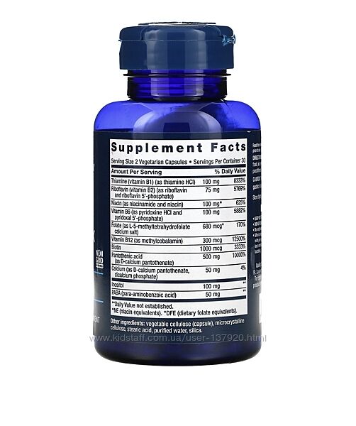 ОписМістить вітаміни групи B в активній формі з ферментамиДієтична добавкаВідсутність ГМО підтверджено сертифікатом Non-GMO LE Certified Нормальний рівень вітаміну B може підтримувати вироблення енергії, функціонування всіх органів, когнітивні функції й необхідні метаболічні процеси. Повний комплекс біоактивних вітамінів групи B містить біологічно активні форми вітамінів B6, B12, ніацину, біотину, фолату 5-MTHF та інші інгредієнти, що робить його чудовим джерелом вітамінів групи B.