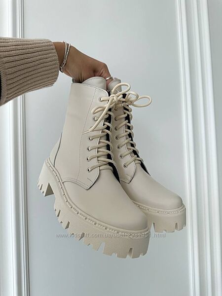 Ботинки женские кожаные зимние, натуральная кожа, натуральный мех, молочные