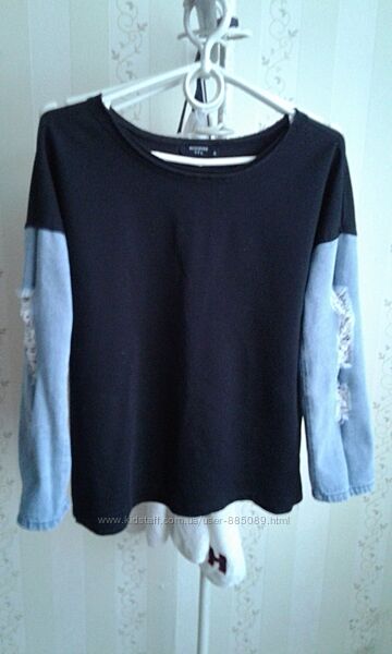 Длина - 55см впереди и 57см сзади, по бокам разрезыРукав от горловины - 59см