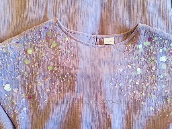 NEXT Нарядное лавандовое шифоновое Платьице со Шлейфом расшито пайетками и