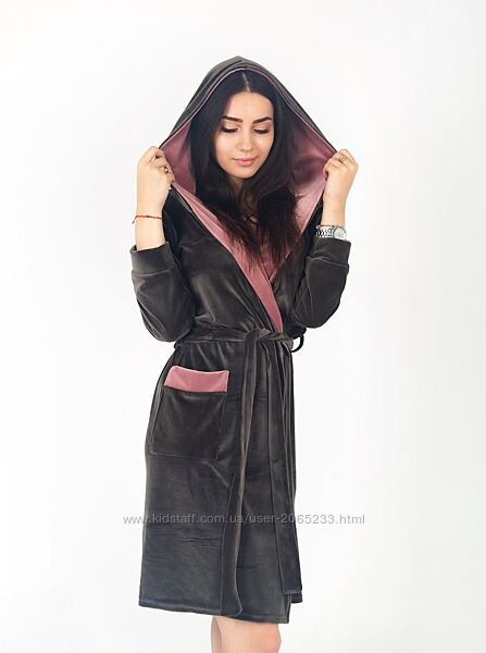 Купить женский халат велюровый с капюшоном можно в Киеве самовывозом, или с доставкой по Украине. Красивые очень мягкие турецкие халаты Tomiko станут хорошим подарком каждой женщине. Супер качество халата приятно вас удивит. Купить халат с капюшоном до колена. Женский велюровый халат очень мягкий на ощупь, не вызывает раздражения, не портится при стирке и легко гладится.Халат на запах, с капюшоном.