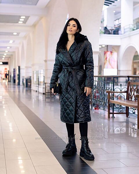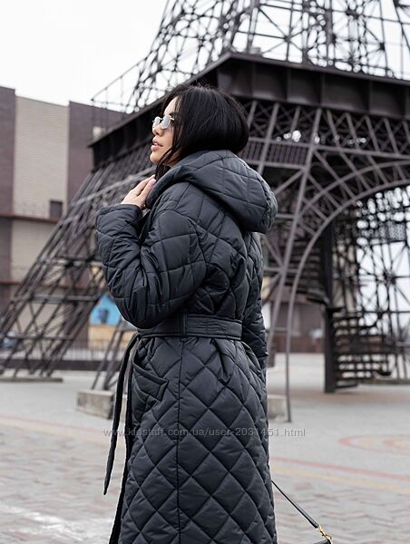 Подробное описание: Пальто женское стеганое зимнее теплое, с капюшоном, черное, темно - серое