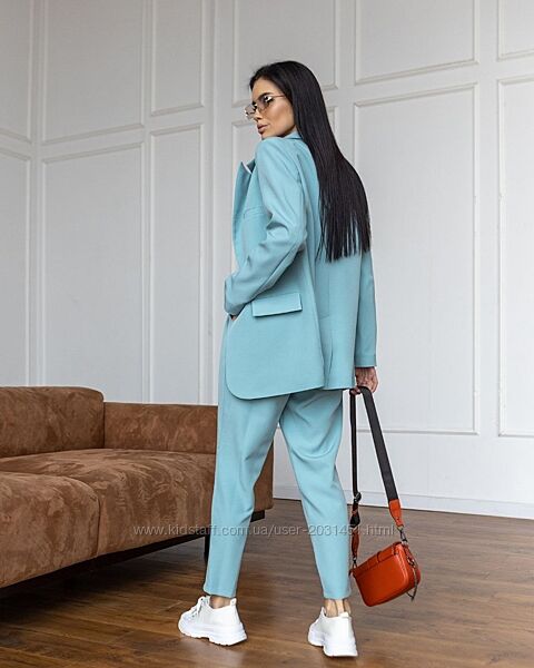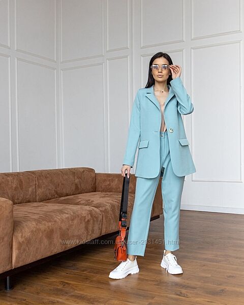 Костюм двойка женский брючный классический, пиджак однобортный, брюки мята