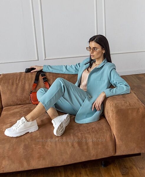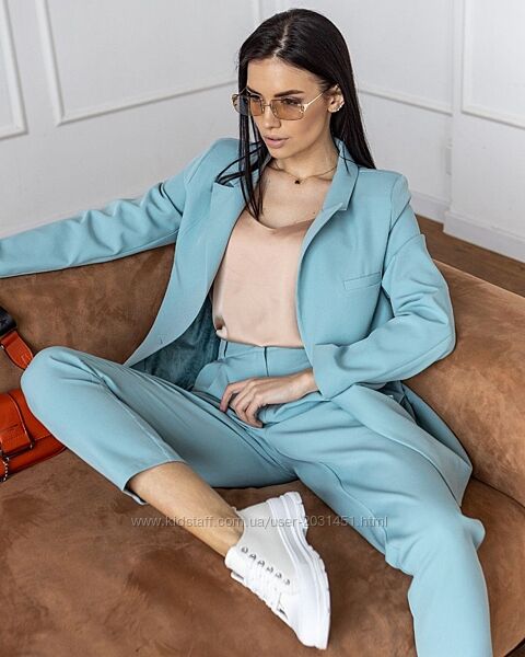 Подробное описание: Костюм двойка женский брючный классический, пиджак однобортный, брюки мята