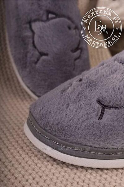 Теплые меховые тапочки / серый кот