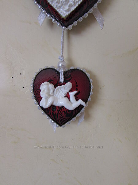 Подвеска двухсторонняя. На обратной стороне каждое сердечко украшено шильдой в форме сердца с бантиками.