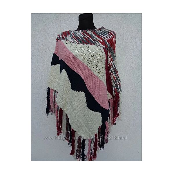 Вязанное стильное пончо от DesigualТеплый и яркий вариант для любой женщины любого размера .