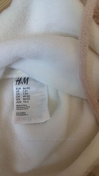 Зимняя шапка на флисе h&m 2-6 месяцев,1-2 года