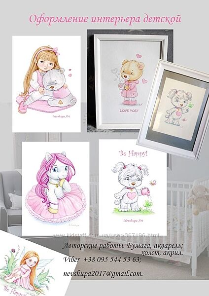 Оформление детской. Авторская акварель, формат 21х30см.В рамке.