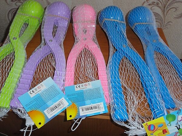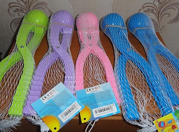 Снежколеп – игрушка, которая пользуется большой популярностью у детей и взрослых в зимний период времени. Снежколеп представляет собой устройство в виде щипцов, на краях которых установлены ковши для лепки шариков. Принцип игры довольно прост - необходимо набрать нужное количество снега и закрыть щипцы для того, чтобы ковши на их краях сформировали шар. Таким образом, получив идеально ровные шары, с ними можно будет делать все, что угодно: играть в снежки или лепить забавные фигурки. К тому же можно использовать и в летнее время для лепки шариков из песка. Большой снежколеп_ длина 37см, диаметр снежка 7см В НАЛИЧИИ - синий - салатовый - розовый - фиолетовый ============================================== ОБМЕНА И ВОЗВРАТА НЕТУ!!!