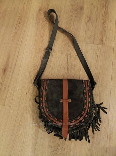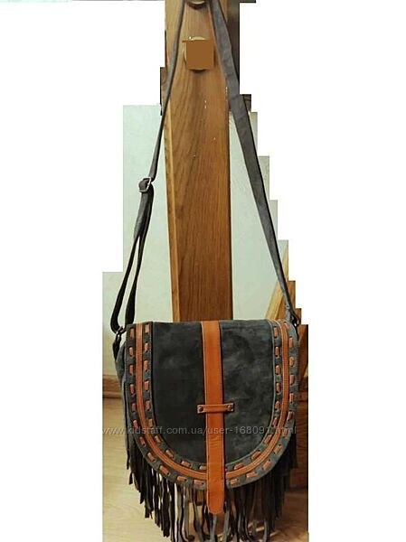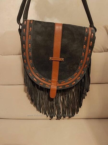 Стильная сумка-кроссбоди из натуральной качественной замши серо-зеленого цвета ,вставки из натуральной кожи рыжего цвета,цвет сумки в оригинале чуть светлее,чем на фото,одно отделение с внутренним карманчиком на молнии,один внешний карман на молнии,состояние идеальное ,без дефектов, длинный ремешок регулируется,размер : ширина 32 см,,высота 28 см,ширина дна 9 см,длина ремешка 145 см.