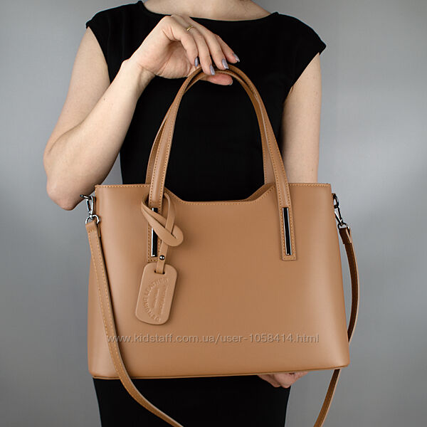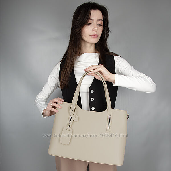 Жіноча сумка з натуральної шкіри, має одне відділення на блискавці, всередині перегородка-кишеня на блискавці, є маленька кишенька на блискавці, 2 кишені для телефону. Також є невелика кишеня на блискавці на задній стороні сумки. Сумка дуже містка, легко розмістить MacBook, документи формату А4, книги, блокноти, косметику, гаманець, телефон, ключі.Розмір: 37 x 27 x 16 см.