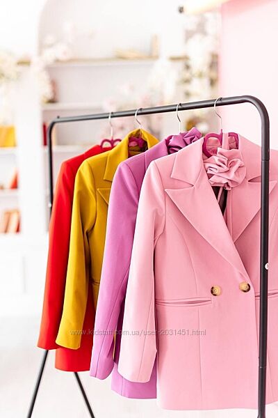🔸 Пиджак свободного кроя, двубортный, с заострёнными лацканами, воротник отложной, прорезные карманы, пиджак застёгивается на пуговицу.