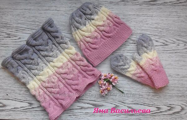 До шапочки також можу зв´язати снуд, шарф, шарф косинку ( від 380грн) і рукавички (від 199 грн)