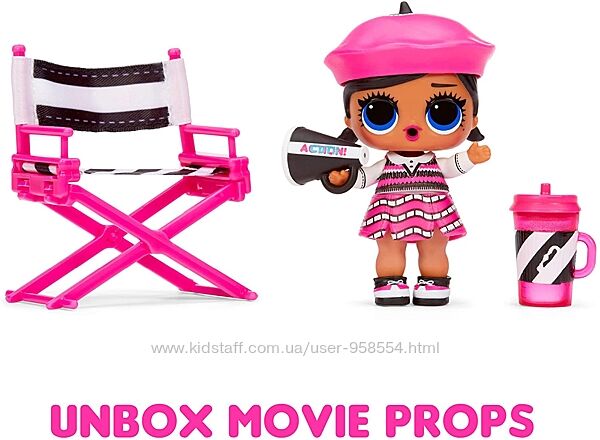 Игровой набор с куклой L.O.L. SURPRISE! серии Movie" - КИНОГЕРОИ - это новая коллекция из 12 куколок - 6 красавиц-актрис и 6 членов съемочной группы. Теперь целых 10 сюрпризов внутри!Среди них 3D-очки, с помощью которых нужно искать секретные сообщения на упаковке и аксессуарах. Очки состоят из двух частей, внутри шара может находиться красная или синяя линзы, или же обе одновременно. Собирайте коллекцию куколок, чтобы найти все элементы 3D-очков и расшифровать все скрытые послания.Также в комплекте: секретное сообщение, бутылочка, аксессуары, обувь, одежда и, конечно же, куколка.Возможно, Вы найдете даже фонарик-софит для Вашей дивы! Не забывайте напоить свою крошку L.O.L. Surprise водой или искупать ее, чтобы выявить дополнительные функции: куколка может плакать, или брызгаться, или делать пи-пи, а, возможно, она меняет цвет в холодной воде?