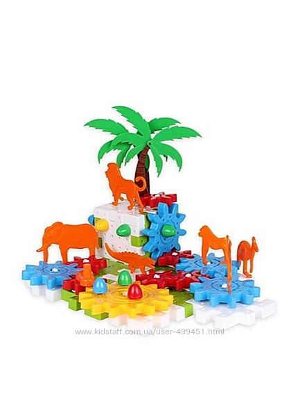 Игрушка насчитывает 103 детали: пластмассовые шестерни, пластины-пазлы, фигурки зверей и деревьев, много других оригинальных элементов.Правильно собранный конструктор превращается в увлекательную конструкцию: разноцветные шестерни движущихся игрушечные жители джунглей и тропические растения из пластмассы ...